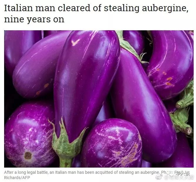 2009年意大利宪兵在一个菜园抓到名偷菜贼,他手上拿着一个茄子。经询问,男子因失业,想偷茄子为孩子做饭。