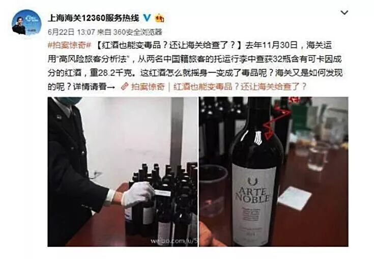 此前,中国上海海关披露了一起极为震撼的案件!两名中国人受朋友委托带两箱红酒回中国,正当他们还在为这趟帮朋友点小忙,还挣了3100多元的辛苦费而兴奋时,海关入境边检人员当场查出红酒中藏有毒品(液体含可卡因)!红酒摇身一变就成了液体毒品!!!???即使你有一万个理由,你也没法辩解!因为!!所有犯罪的人都是这么说的!