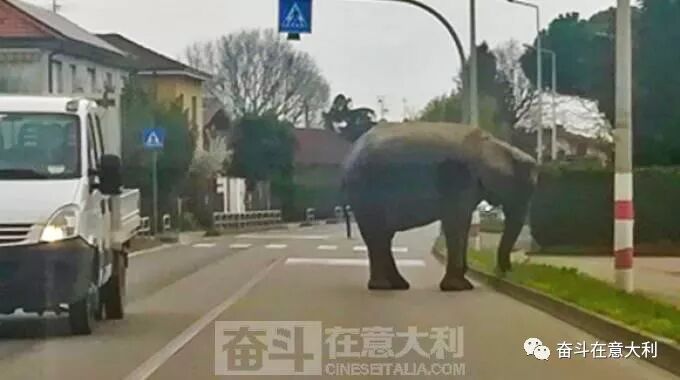据意大利媒体报道,奋斗在意大利编译:近日,一个在贝尔加莫Badalasco地区表演的马戏团大象逃跑,造成当地市民恐慌。