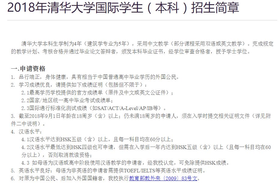 其实,今年(2018年)清华大学国际学生本科招生工作开始了。