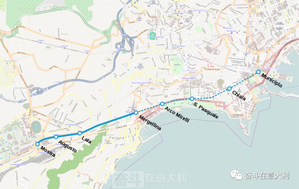 恰逢1984年,意大利申办1990年世界杯成功,当局希望最大限度地解决球迷前往那不勒斯San Paolo体育场的问题,抛弃了原有的有轨电车建设,并争取来了欧盟拨款以及意大利国家拨款,改为地铁建设,计划建设一段长2.3公里,有四个车站的地铁。
