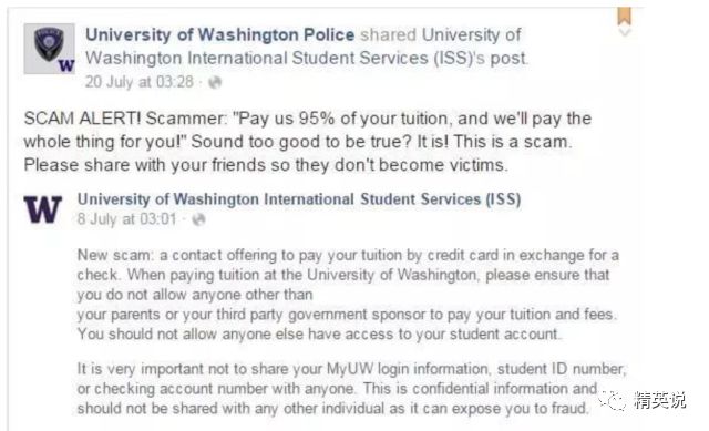 华盛顿校方:发表通告,提醒留学生不要上当受骗