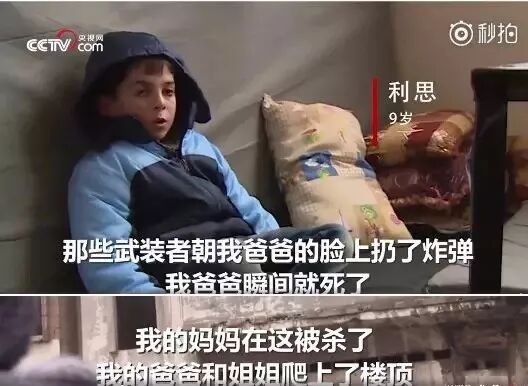 “我的妈妈被杀了,武装组织朝我爸爸脸上扔了颗炸弹,爸爸瞬间就死了。”孩子的脸上死气沉沉,一脸绝望。问:你恨那些伤害了你的人吗?他说:当然,恨又能怎样?我的手臂和腿都不能动了。