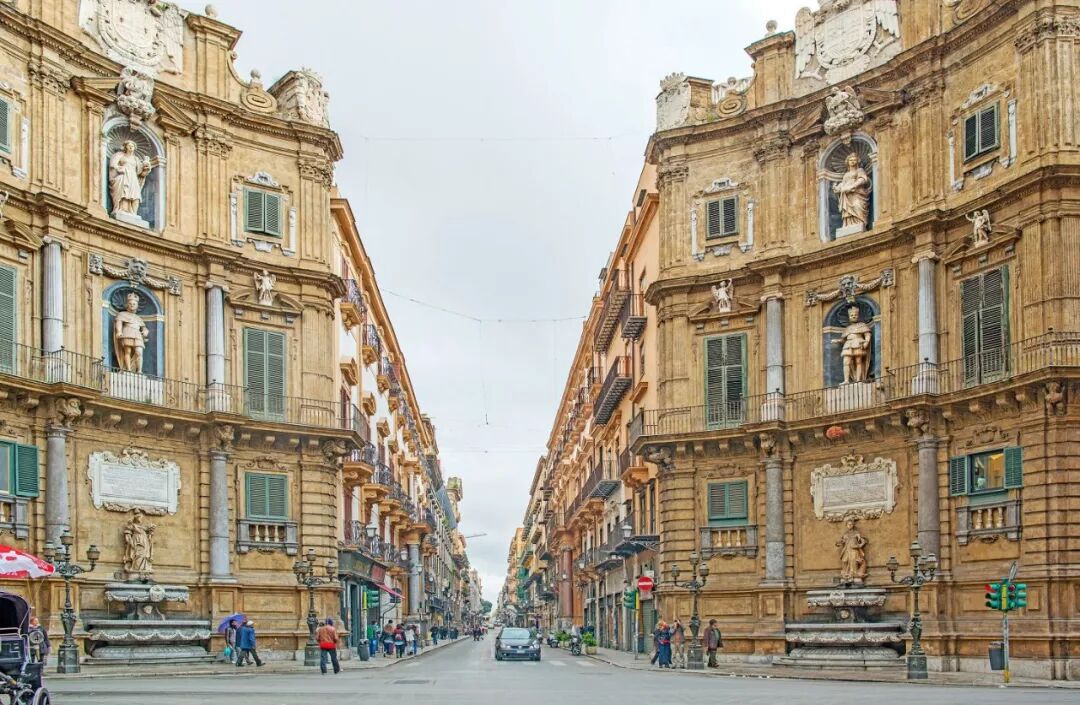 巴勒莫的布局非常简单,老城是按照十字架的形状建造的,将城市划分为4个区域,十字架的中心便是四角场。