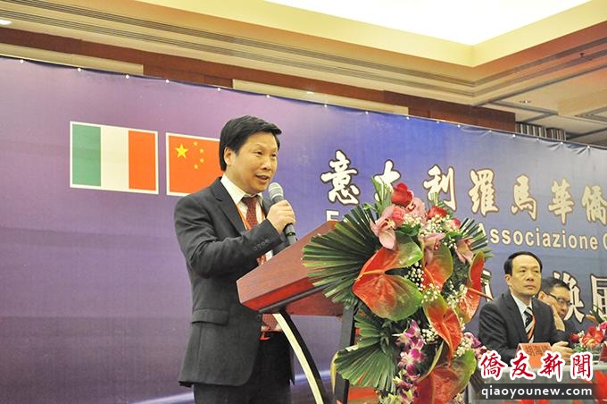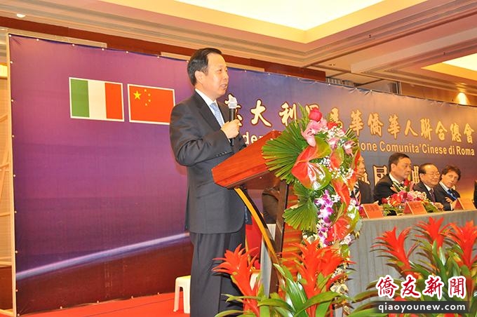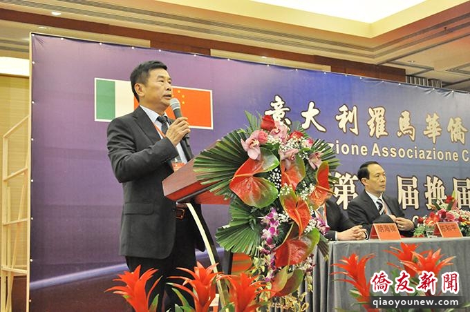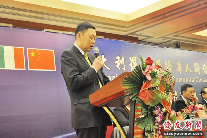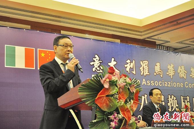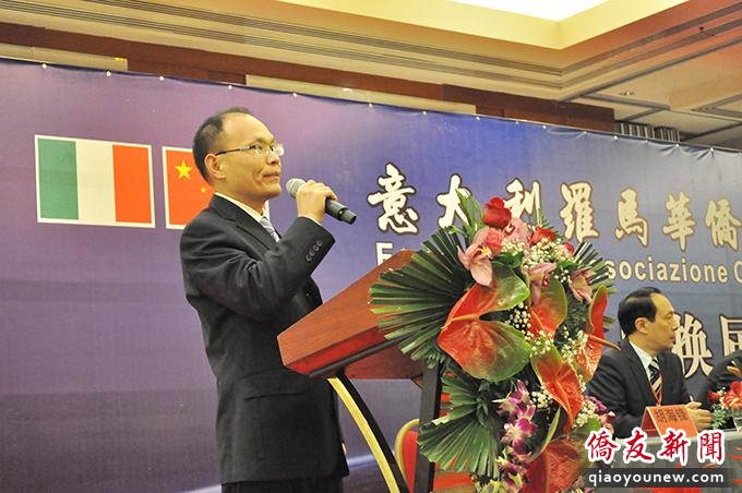 意大利罗马华侨华人联合总会第七届会长陈少敏先生发表讲话,尊敬的中国驻意大利大使馆李瑞宇大使、姚成参赞、李帆主任,尊敬的中国侨联桑宝山副部长,尊敬的意大利各位官员、意大利友人,尊敬的各兄弟侨团会长们、女士们、先生们,大家晚上好!已有30年会史的意大利罗马华侨华人联合总会,今晚在这里举行第八届会长团就职典礼。首先,我们以最热烈的掌声对大家的到来表示热烈的欢迎。成立于1986年的意大利罗马华侨华人联合总会,一直高举爱国大旗,与中国各省、各地开创合作,为中国经济发展,为中意两国经贸往来等方面发挥了积极的作用。自从成立以来,在各届会长团成员共同努力下,团结各兄弟侨团、积极配合中国驻意大利大使馆做好侨务工作,配合罗马市政府做好与华侨华人有关的工作,帮助同胞们克服各种各样的困难。陈少敏回顾往届罗马华侨华人联合总会所做的成绩和重要事项。他说,第七届会长团已走过三年,非常感谢中国驻意大利大使馆、各兄弟侨团对我们会务工作的支持,感谢第七届会长团的努力工作。而今,欧债危机的阴影,使生活在意大利的华人面临巨大的挑战,但是机遇也伴随挑战而来,我们要时刻保持清醒的头脑,团结一致,群策群力,不断开拓创新,把握新机遇,只有这样才能带领侨胞稳定发展,新的时代,需要新的领导人,第七届罗马华侨华人联合总会使命将交棒第八届会长团。