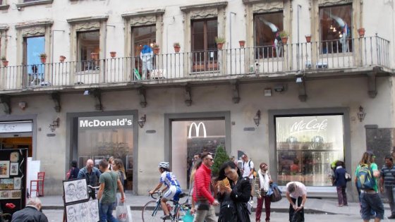 近日,佛罗伦萨市长纳尔德拉在“旧宫”(佛罗伦萨政府)发表了声明,表示拒绝麦当劳在佛罗伦萨Duomo广场附近设立分店,并称“主教堂广场不会沦陷”。这被当地民众称为“抵抗大型连锁店入侵”的初步胜利。