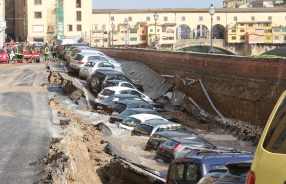 最近一次的佛罗伦萨公路塌陷事件发生于今年的5月24晚至25早间,佛罗伦萨老桥附近的lungarno Torrigiani路段,当时路面突然坍塌,一个长299米宽7米深4米的巨大“鸿沟”出现在了佛罗伦萨街头,当地政府立即下令修复此路段,但一直没有找到塌陷原因。