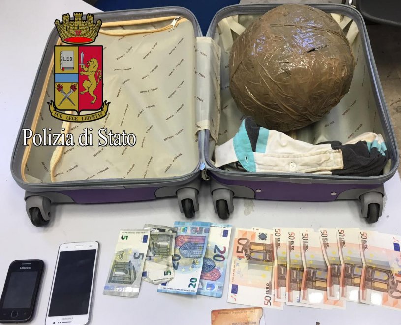 在巡逻时,米兰当地警方发现该名男子肩背背包,推一滚轮行李箱在广场上晃悠,形迹可疑。在发现广场上有警察后,该名男子显得神色慌张。警方于是对该男子进行了搜查,结果在其行李箱跟背包内发现藏匿其中的1.25公斤的大麻,450欧元的现金以及手机两部。