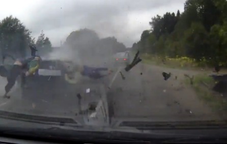 事发时,有其他车司机拍到了车祸画面,场面十分惊心动魄。在视频中可以看见,在双行道上,一辆汽车企图超速,在遇见反向行驶 卡车时来不及变道,导致相撞事件的发生,汽车被立即撞击的四分五裂,车上乘客由于撞击力巨大而被抛出汽车。