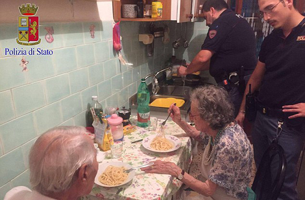 看到老人家里只有很少的食物,一名警察便利用仅有的食材,挽起袖子,用自己最擅长的方式为老人烹饪了意大利面。为了老人的健康着想,在老人吃面前,细心的警察还叫来了救护车守候在门外。