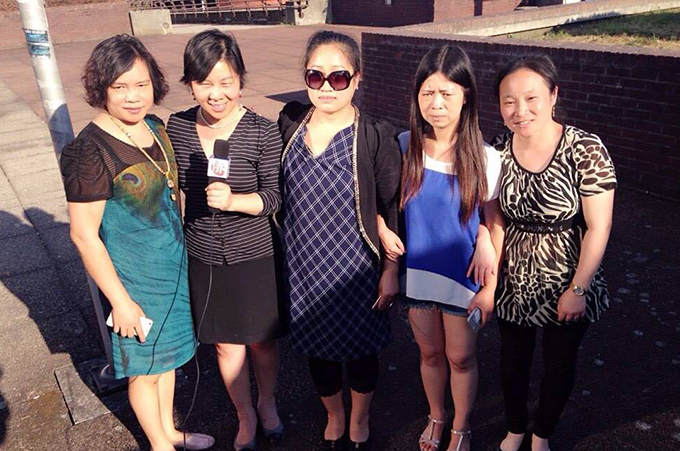 现场来了很多好心人。其中有以为女士的儿子在巴黎开店 ,今天从意大利来看儿子,听说法庭开庭,饭都没有吃就赶来法庭助威。一位30多岁的原籍温州的女士冒着被老板辞工的风险,也赶来现场。