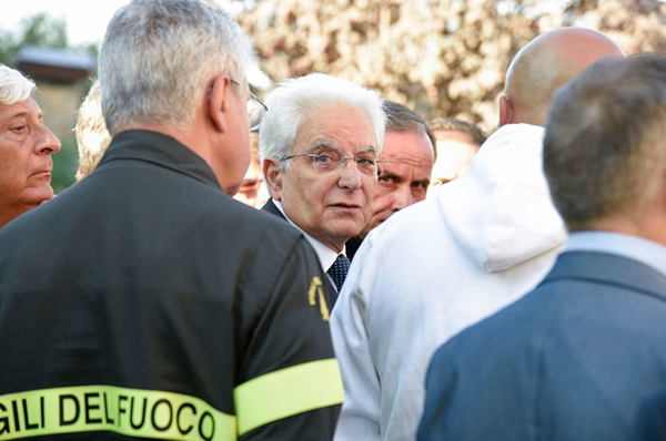 上午,意大利总统塞尔焦•马塔雷拉(Sergio Mattarella)乘坐直升机抵达阿马特里切(Amatrice),看望慰问当地灾民和救援人员,他说:“谢谢你们所做的一切。”据悉,总统还将看望拉齐奥镇(laziale),然后在阿斯科利(Ascoli)举行国葬,悼念在地震中的遇难者。