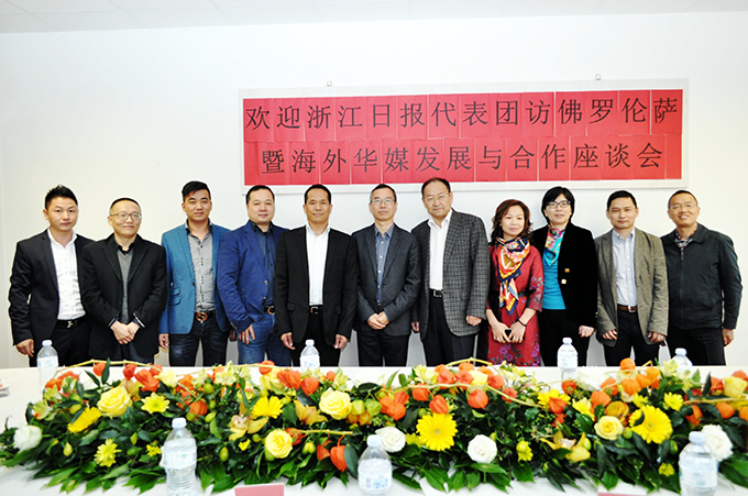 欧洲环球时讯网佛罗伦萨11月5日电(记者欧文)由浙报集团副社长蒋国兴率领的访问团一行6人11月4日抵达佛罗伦萨并造访意大利中华炎黄文化研究会,与该会部分成员举行座谈,就意大利华文媒体的现状与发展趋势、海外华媒与中国媒体互动合作、华文媒体与海外侨团的关系及影响等话题进行了热烈讨论。中国驻佛罗伦萨总领馆王建领事应邀出席了座谈会。