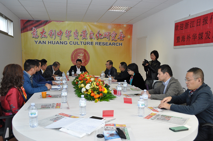 座谈会由炎黄文化研究会秘书长、环球时报欧洲版驻意大利特约记者尹名兴主持。尹名兴向浙报集团访问团介绍了意大利华文媒体现状及华文媒体存在的意义和发展面临的困境,希望中国政府和有关部门能对海外华媒给予足够的重视,同时期待在新媒体领域加强与浙报集团的合作。
