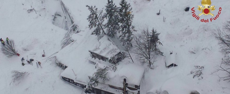 18日,意大利中部一小时内连发3场5级地震。震中位于Lazio大区、阿布鲁佐大区以及马尔凯大区之间,震源深10KM。在暴雪加上地震的双重侵袭下,意大利佩斯卡拉省内一名为Rigopiano的度假酒店因为雪崩而被埋。“死了很多人,”参与阿布鲁佐大区救援活动的Antonio Crocetta表示,“有2个人被救,但是还有很多人生死不明。”