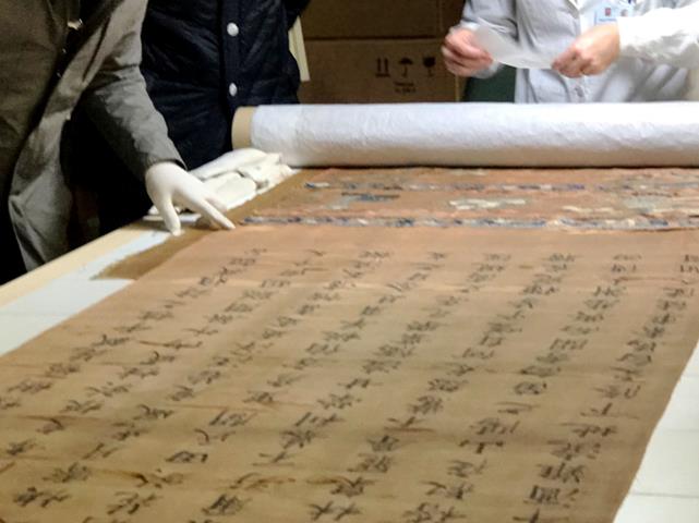 作品为中国清朝咸丰二年(公元1852年)所书,材质绫本,周边鑲刺绣图案 摄影:曾广仪