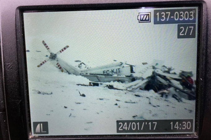 报道引述当地警方和亚平宁山区救援队消息人士的话说,失事直升机当时正在拉奎拉滑雪区执行救援任务,机上共有6人,其中1人为受伤的滑雪者。