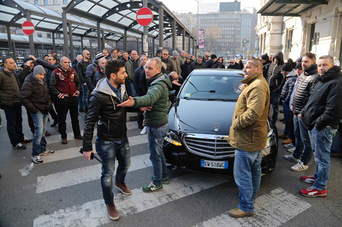 在长达多年的等待后,令众多出租车司机没有想到的是,近日在Milleproroghe新法中Lanzilotta签署的修正法案将出租车和N.C.C.(带司机的租车服务)的规章推迟到了2017年12月31日出台,此举实际上是给Uber(优步)和其他提供专车服务的APP更大的自由,也令众多出租车司机感到了背叛,因此也与警方之间爆发了严重冲突。