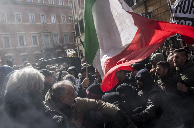 欧洲新闻社-欧洲华语广播2月22日罗马电 (记者 谢乃龙 王乃仟 ) 21日,来自米兰、那不勒斯、佛罗伦萨等多地出租车司机聚集在罗马众议院举行抗议,认为参议员Lanzilotta在Milleproroghe新法中签署的修正法案违背了自身权益,并与警方发生严重冲突。
