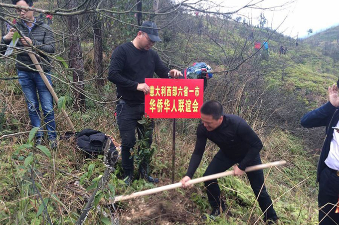 挖坑、栽植、培土、浇水……3月12日,由团县委、县侨联、县五水共治办公室、县林业局、青田侨报•中国青田网、青田侨乡公益救援队等单位举办的第七届“绿水青山 就是金山银山”植树节公益活动在仁庄镇冯垟村举行,此次活动不仅吸引了众多网友参与,还迎来了一批特殊的“志愿者”,他们便是旅居意大利、波兰、法国、捷克、保加利亚、西班牙等国家12个侨团的华侨代表。对于这些华侨而言,这次植树不仅是为家乡添“新绿”,同时也把 “根”扎在了故乡,表达满满的思乡情怀。(中国青田网)