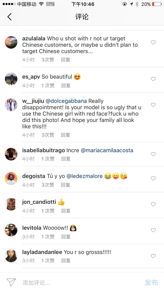 中国已经不再是以前的中国了,哪些西方国家始终带着有色眼镜看待中国人,觉得很无知,不懂fashion!但是真的并不是他们那些无知可笑的理解了!我们可以做出最棒的衣服,我们可以让世界都穿中国制造的衣服!请那些进来或者即将进来的品牌,请先学会尊重和了解我们,如果通过丑化别人来提升自己的品味,我建议还是有多远滚多远吧!