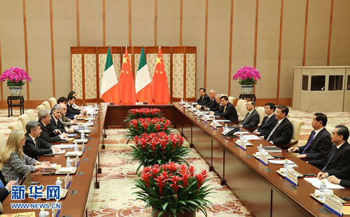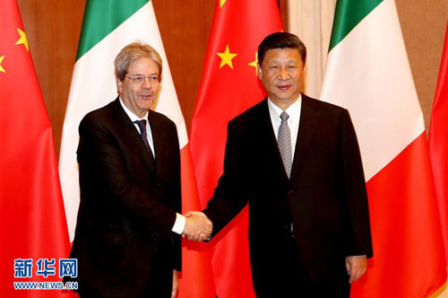 习近平强调,中意同为国际社会重要成员,双方要保持高层交往势头,密切政府、立法机构、政党、地方等交流。要落实好中意2017年至2020年合作行动计划,扩大双向投资,推进产业园区建设,加强电子商务、创新等领域合作。中方欢迎意方积极参与“一带一路”建设,支持两国企业开展港口、造船、航运合作。要开创全方位、深层次、宽领域人文交流局面。中方愿同意方就重大国际问题保持沟通。希望意方继续在欧盟发挥积极作用,维护中欧关系良好发展势头。中欧要积极扩大务实合作,对接“一带一路”倡议和欧洲投资计划,为中欧关系发展注入新动能。