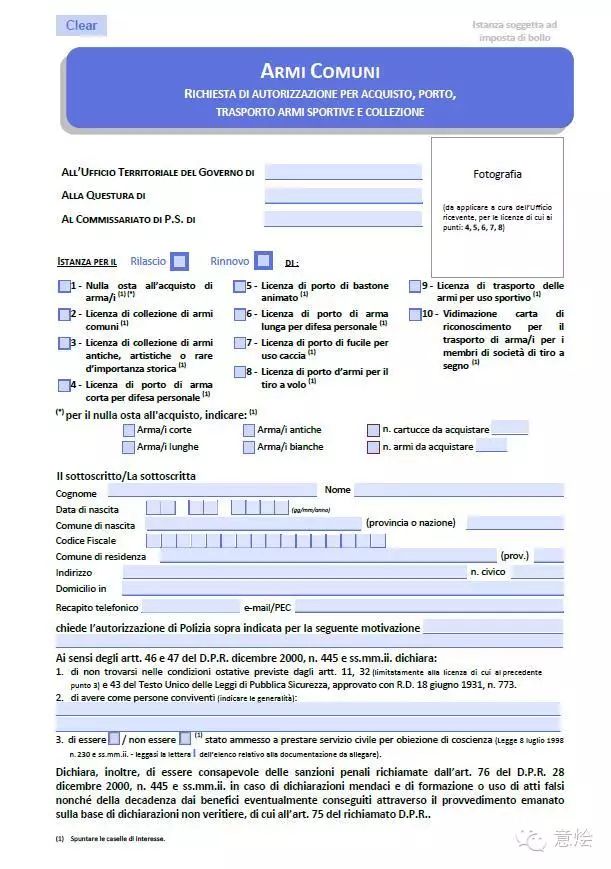 意大利是一个可以合法持枪的国家,但是可能还是有很多人不知道怎么申请持枪。为此,好奇的小编也按耐不住了,在网上进行搜索,各种“如何申请持枪证”的信息就这么出来啦~~~