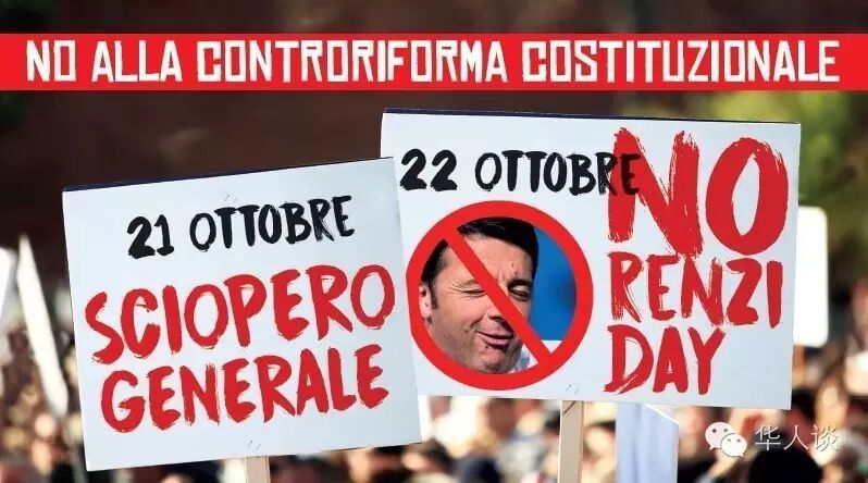 《华人谈》整理报道:22日,意大利多个城市爆发大规模游行示威活动,反对现任总理伦齐及其政府所提出的宪法改革方案。组织方称,包括首都罗马在内的多个城市共有4万民众参与了此次活动。游行示威的矛头直指现任政府,认为总理伦齐执政两年多以来实行了多项错误的经济、政治措施。