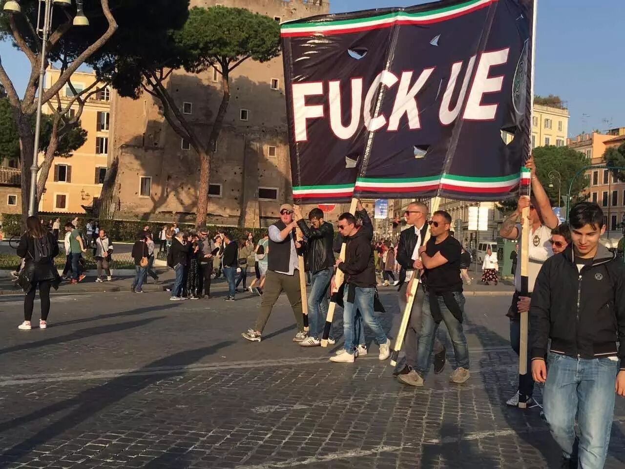 15时左右,反欧盟激进团体“罗马属于罗马人”(Roma ai Romani)从Viale Manzoni出发向维多利亚广场行进。据《信使报》报道,在本次游行队伍中,出现了法西斯式敬礼,游行队伍中领头成员一边高举队旗一边做出法西斯式敬礼。