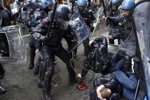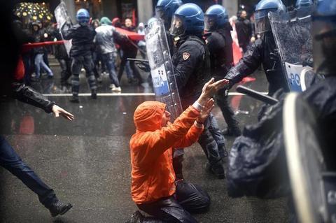 (视频)5.1劳动节:都灵工会人员雨中游行与警方发生暴力冲突!