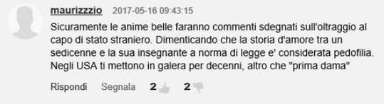 “好吧,善良的人都为他们的爱情故事鼓掌是吧,但是大家别忘了,现在的这对壁人在当年可是一个16岁的未成年和他的女老师发生的不伦之恋,从法律的角度上讲,这老师是可以被定性为‘恋童癖’的,若事情发生在美国,恐怕现在的法国第一夫人早就被判个10年有期徒刑了。”
