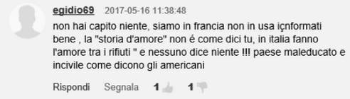 “你懂个毛,人家是在法国又不是在美国,别丑化他们美好的爱情。在意大利,光天化日下在垃圾堆xxoo都没人管,这才是个没有节操没有底线的国家好不好!”