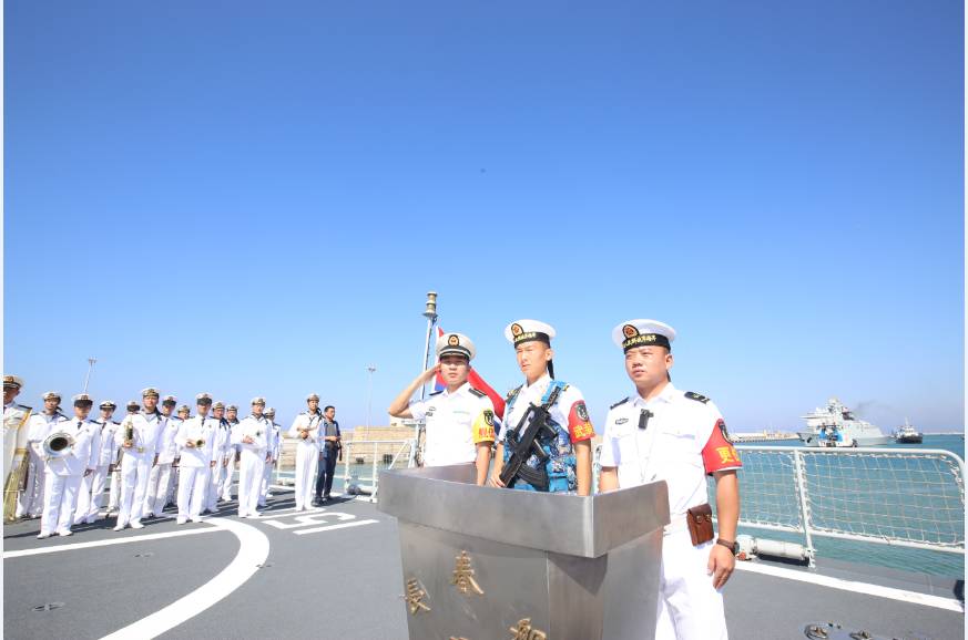 编队指挥员沈浩在欢迎仪式致辞中说,“相知无远近,万里尚为邻,”中意两国彼此钦羡悠久文明,彼此爱重和平友谊,希望通过此访化万里之“远”为万里之“情”,在深入交流中进一步增进互信、加强合作、深化友谊,不断加强两国海军务实合作,推进两国关系持续向好发展,做心怀和平、时代友好的“万里之邻。”