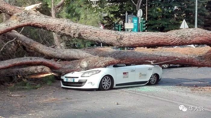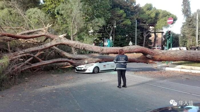 据意大利ANSA网站报道,今日在罗马Piazza delle 5 giornate区域,一棵大松树突然倒下,压向了迎面而来的3辆汽车。