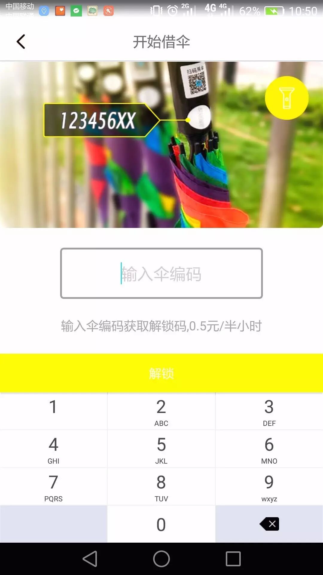 APP上缴纳29元押金,最低充值金额是9元。最后输入伞的编号,即可获得密码开启雨伞,费用为0.5元/半小时。