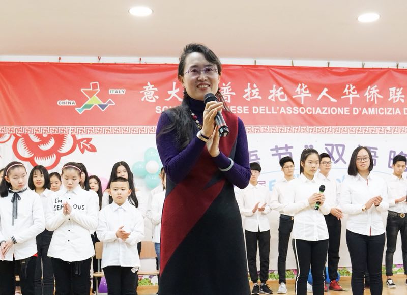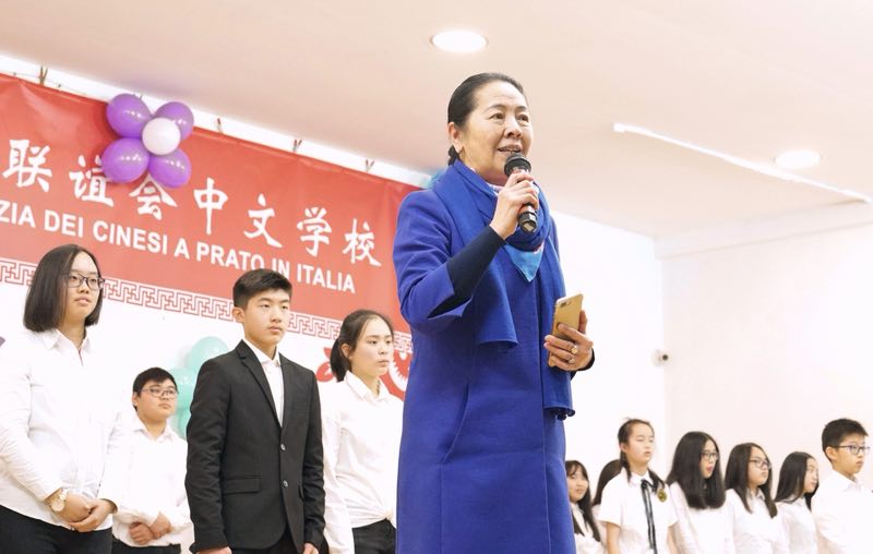 此次双语晚会的特别嘉宾,中国驻佛罗伦萨总领馆周海燕副总领事说,一进校门,感觉自己置身于欢乐的海洋。她孩子们亲切问好并为晚会致辞,她对普拉托联谊会中文学校在华文教育上所取得的成绩以及学校多元化的教育模式给予了肯定。看到普拉托联谊会中文学校有这么多优秀的孩子在这里学习英语并勇于展示自我,她感到非常高兴,对在中文学校能举办这样一场隆重的双语晚会表示期待。随后,周海燕副总领事一行在联谊会领导的陪同下与家长和孩子们一同观看节目。