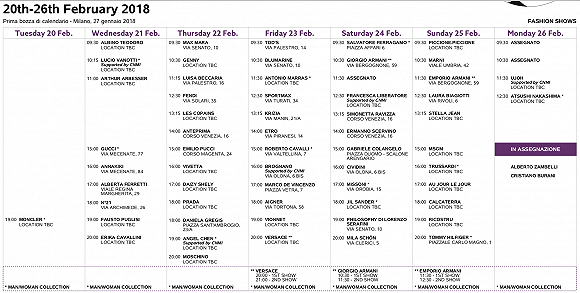 CNMI (Camera nazionale della Moda Italiana 意大利国家时装商会,以下简称 CNMI)公布了米兰时装周2018/19秋冬季女装展示的相关日程安排。