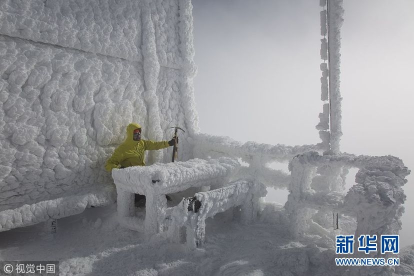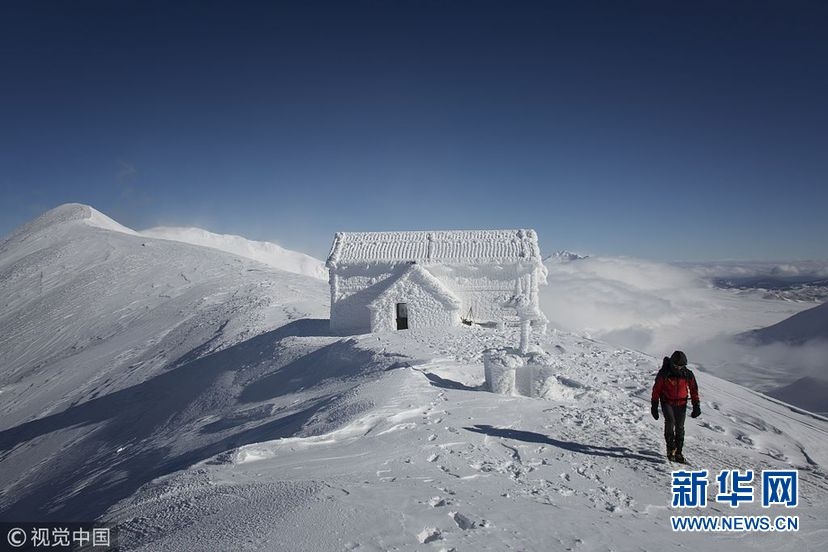意大利山区小屋遭遇强暴风雪变“冰屋”